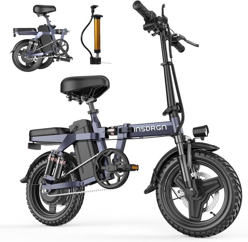 INSDRGN A14 electric bike features AI-powered pedal assist. 9 shock absorbers. a foldable design for unmatched comfort and portability.
