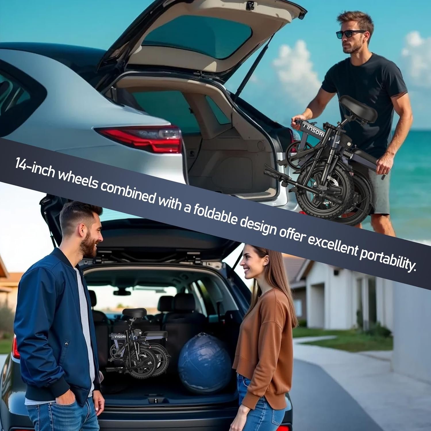 • Compact Foldable Design: Featuring a 14-inch wheel and foldable frame. this electric bike folds down to a compact size of less than 0.135m³. making it incredibly portable and space-saving. Ideal for urban commuters who need to store their bike in tight spaces or transport it easily.
