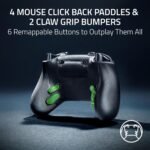 - 4 MOUSE CLICK BACK BUTTONS & 2 CLAW GRIP BUMPERS — Enjoy the same ultra-responsive actuation found in Razer’s top gaming mice with 4 buttons built into the controller’s ergonomic. rubberized handles—topped with 2 claw grip bumpers for even more control